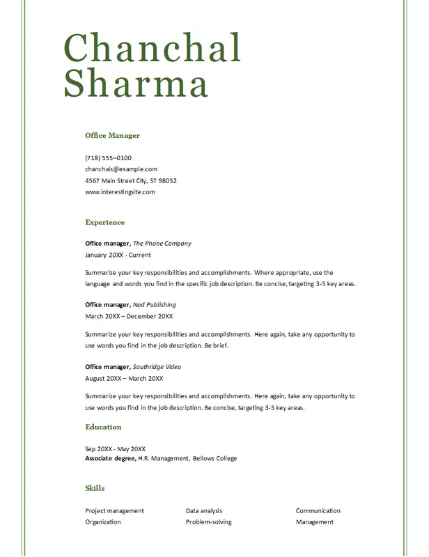 • Düzenleyin: Dosyayı Microsoft Word veya Google Docs ile açın ve yer tutucu metni kendi bilgilerinizle değiştirin.